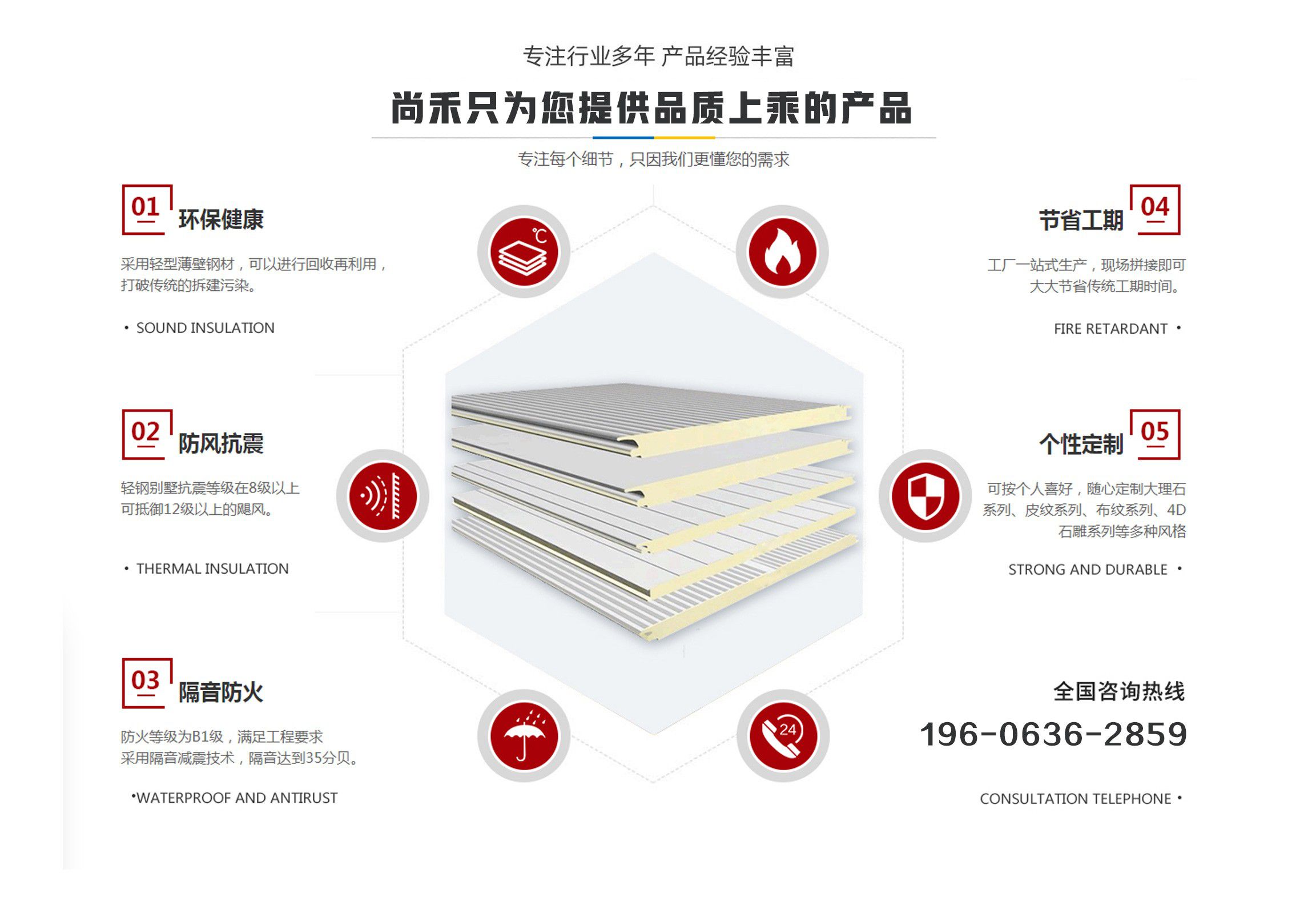 山東尚禾經(jīng)貿有限公司是集板材設計、研發(fā)、生產(chǎn)、施工、一體化的科技公司,并在同行業(yè)中率先通過了質量、環(huán)境、安全管理體系認證。公司2011年投入資金2000余萬元引進世界先進的聚氨酯節(jié)能板連續(xù)生產(chǎn)線、意大利進口發(fā)泡系統(tǒng),采用六組份在線自動操作混合澆注技術,在線一次性完成社會配料中心或工廠的配比混合工藝,并可以根據(jù)溫度在線自動調整,從而生產(chǎn)處與眾不同的高強度、節(jié)能型、綠色環(huán)保的聚氨酯夾芯板。(其使用年限高于同行業(yè)其他品牌5-10年) 公司主要經(jīng)營范圍包括聚氨酯夾芯板,PU夾芯板,冷庫板,潔凈板,聚氨酯冷庫板,冷庫保溫板的設計、生產(chǎn)、銷售、技術指導、安裝及一體、以及進出口業(yè)務,是中部六省最大的綠色節(jié)能建材生產(chǎn)基地。聚氨酯夾芯板年產(chǎn)200萬平方米、PU夾芯板、冷庫保溫板500萬平方米、鏈整產(chǎn)業(yè)綜合實力,開創(chuàng)了六省至中西部創(chuàng)新型中小名企總部基地,并將著力推進中國中西部地區(qū)集成房屋住宅產(chǎn)業(yè)化發(fā)展進程。 科技創(chuàng)新、節(jié)能典范。千萬間始終秉承“誠信、合作”的企業(yè)文化精髓,長期致力于鋼板材結構節(jié)能建筑產(chǎn)業(yè),愿與社會各界攜手合作,共鑄綠色、環(huán)保美好未來。 產(chǎn)品具有良好的絕熱、阻燃、隔音、環(huán)保、耐久性能,可廣泛應用于工業(yè)、商用建筑內外墻、以及民用建筑外墻保溫、空調通風系統(tǒng)、專用防火保溫門等領域。 我們始終秉承...